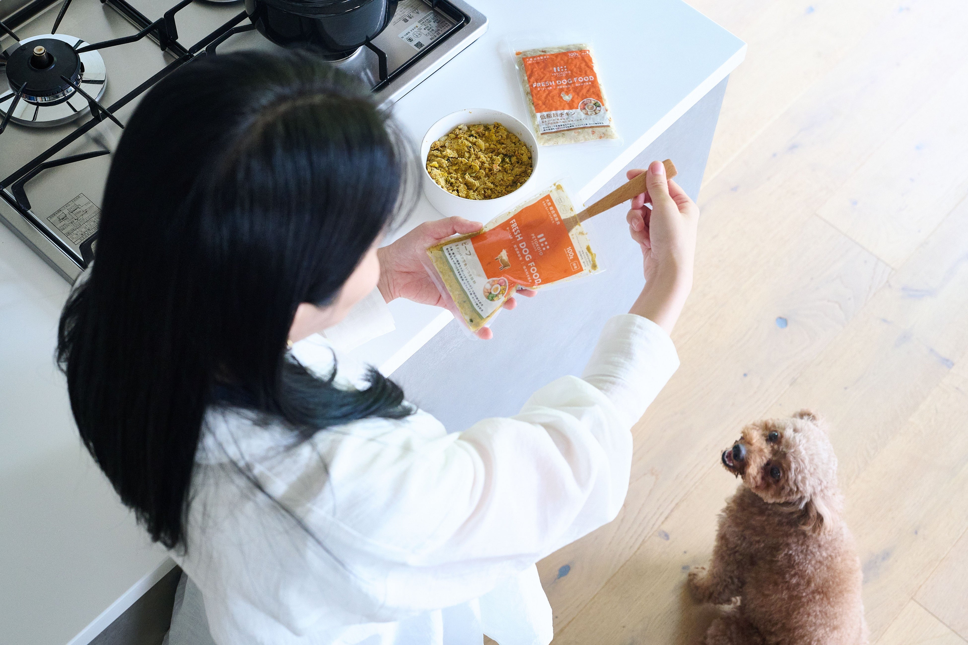 レシピは社内獣医師や栄養士が開発し、ビタミンやミネラルのサプリメントをブレンドすることで総合栄養食をお届けしています。2020年2月の販売開始から、常温でも美味しいウェットドッグフード、フリーズドライおやつも開始し、累計販売数は5千万食を突破、累計会員数は10万人、取扱店舗数はライフやグランドフードホールなど400店舗を超えました。(2024年9月時点)
