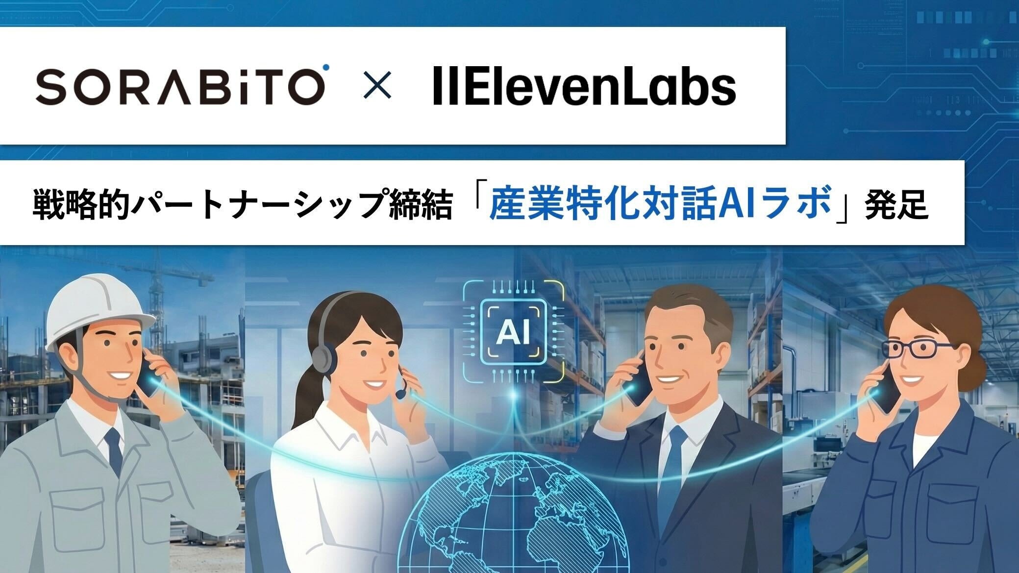 SORABITO株式会社(本社:東京都中央区、代表取締役社長:博多 一晃、以下「SORABITO」)は、イレブンラボジャパン合同会社(本社:東京都千代田区、Japan & Koreaゼネラルマネージャー:田村 元、以下「イレブンラボ」)と、建設・レンタル・物流・製造分野における対話AIの普及を目的とした戦略的パートナーシップを締結したことをお知らせします。