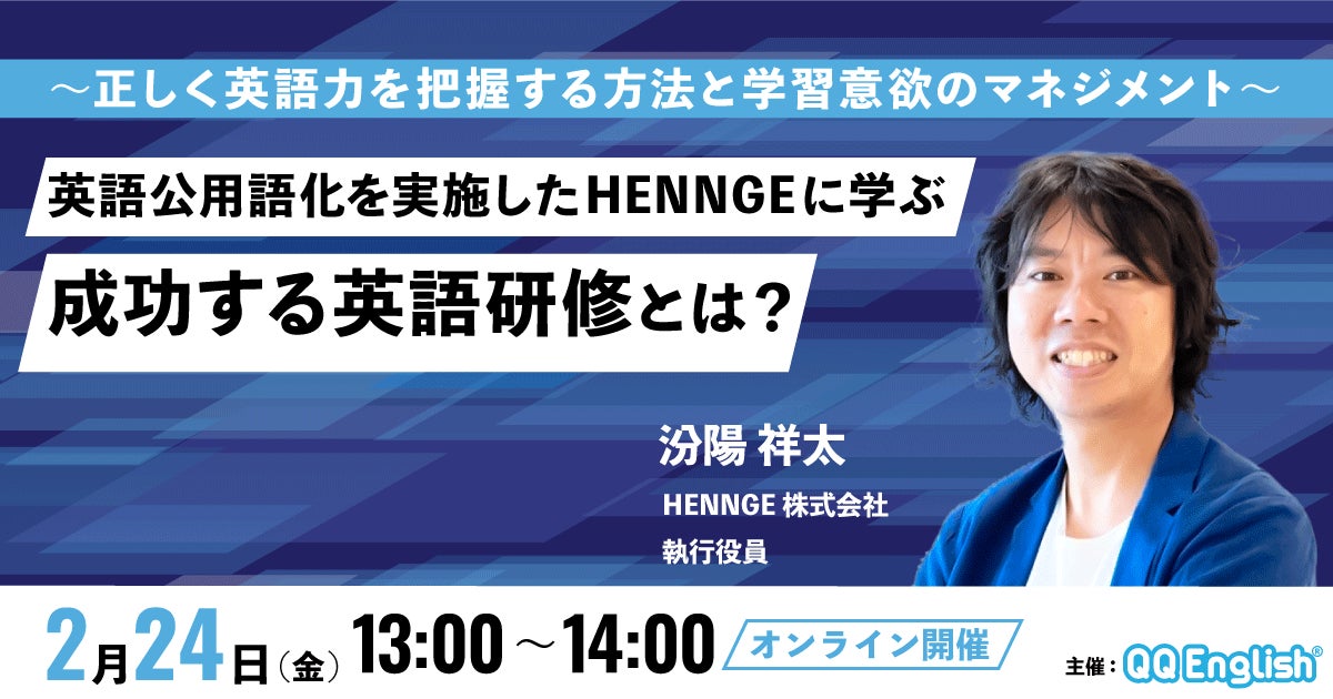 「英語公用語化を実施したHENNGEに学ぶ、成功する英語研修とは?〜正しく英語力を把握する方法と学習意欲のマネジメント〜」と題して人事担当者向けのセミナーを開催します。