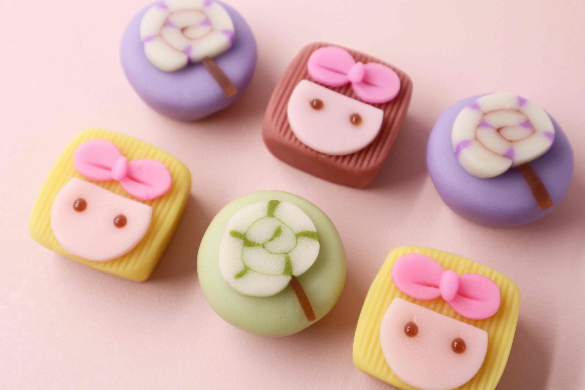 そして注目のコラボ商品も発表!「千秋庵総本家」では北海道土産として「元祖山親爺(やまおやじ)」が有名だが、今回はよりオリジナリティのあるコラボ商品を実現するため、上生菓子での開発となった。こちらも『CANDY CANDY』のミュージックビデオの世界観をベースに、きゃりーやダンサー、そしてペロペロキャンディーをモチーフにしたねりきりによる「きゃり和菓子」が誕生した。ねりきりは、厳選した北海道産小豆を使用したこしあんをベースに熟練の職人が一つ一つ丁寧にお作りしたもので、淡い藤色や抹茶色など上生菓子ならではの柔らかい色味が実現、見事にパステル調の“スウィーティー”な「きゃり和菓子」が完成した。さらに販売時は、オリジナルのコラボ掛け紙が巻かれた特別パッケージでのお届けとなる。