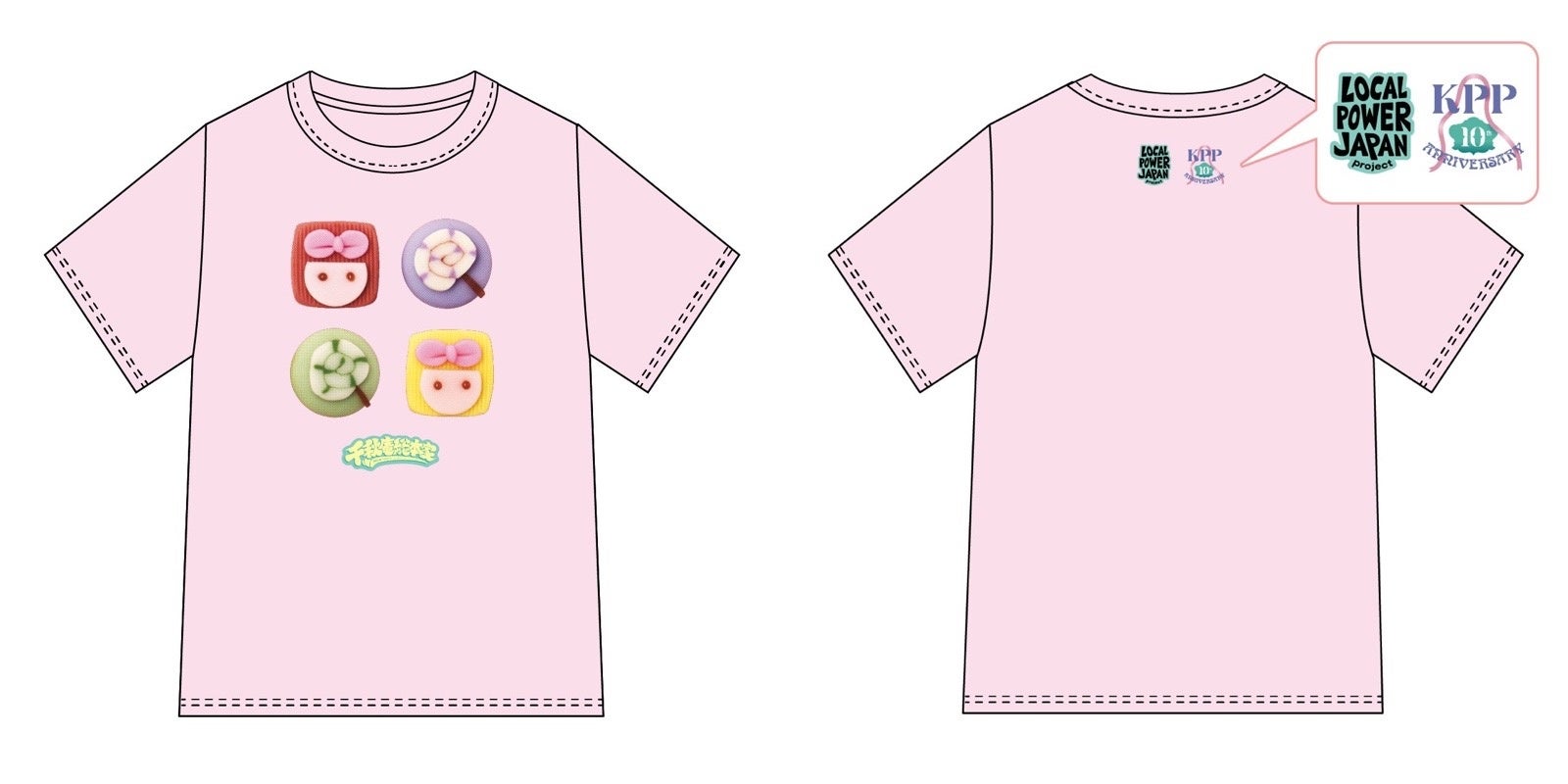 そして、コラボロゴTシャツのデザインも発表になった。フロントにはコラボ商品「きゃり和菓子」と「千秋庵総本家」コラボロゴがデザインされ、バックの首元にはきゃりー10周年ロゴとプロジェクトロゴが入った記念アイテムとなっている。こちらのコラボTシャツは、本日より「LOCAL POWER JAPAN project」オンラインショップにて2週間限定で販売される。詳しくは特設サイトhttps://localpowerjapan.comまで。