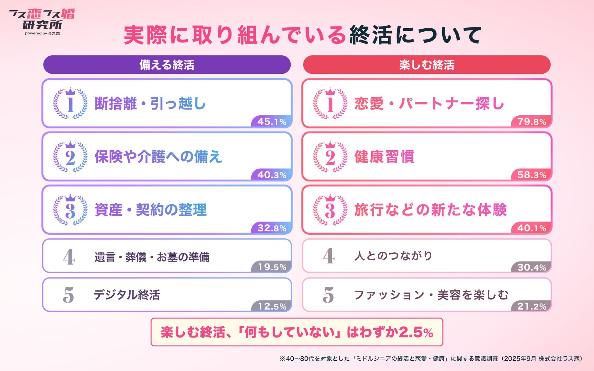 【ラス恋、1,926名調査】終活=死の準備はもう古い?中高年の98%が“人生を楽しむ終活”を実践!