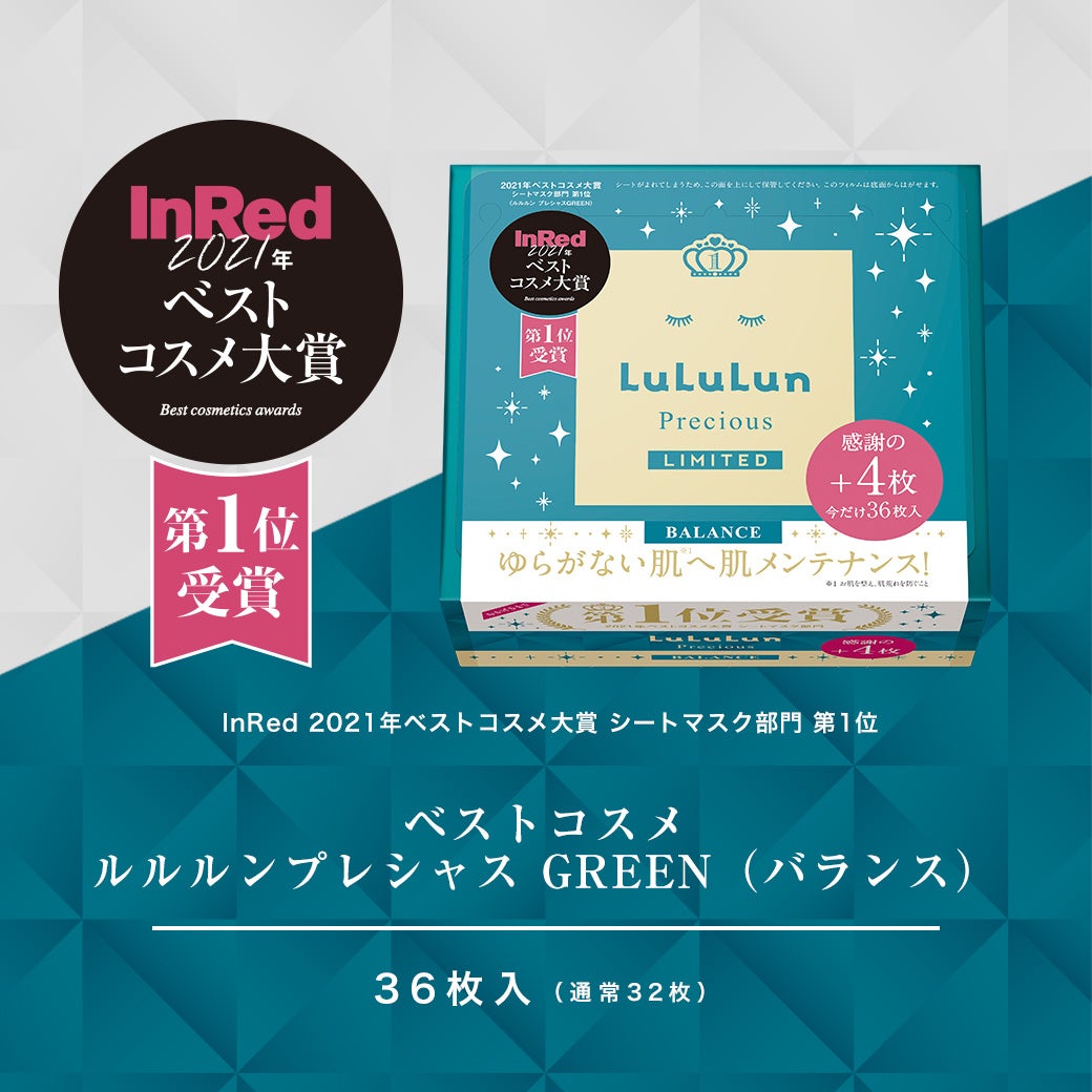 - 「InRed 2021年ベストコスメ大賞 シートマスク部門 第1位」ルルルンプレシャス GREEN(バランス)