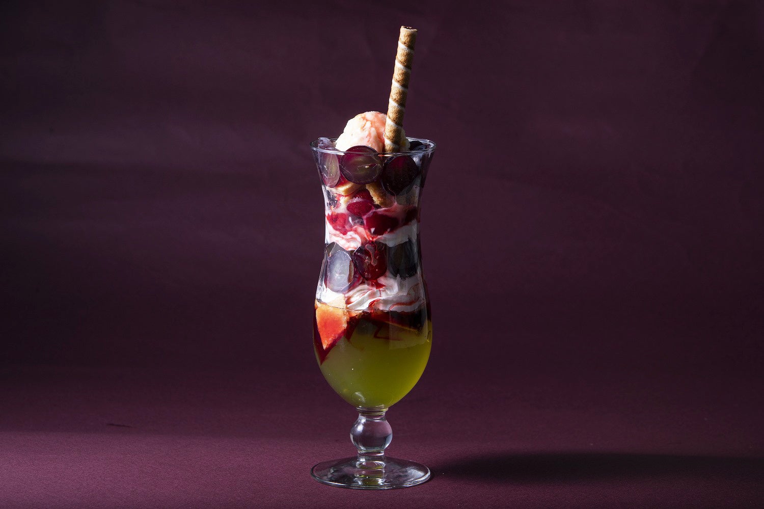 テーマは「葡萄のお化け」。白ワインとブレンドしたシャインマスカットゼリーの上に、葡萄、ミックスベリー、ホイップクリーム、自家製クラッカーを交互に重ね、最後にバニラアイスをトッピングしました。ボリューム満点の“食べるカクテル”で、ハロウィンナイトを満喫しませんか。