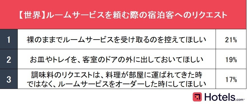 ルームサービスを頼む際の宿泊客へのリクエスト第1位