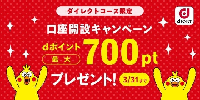 ■「dポイント最大700ptプレゼント!口座開設キャンペーン」についてはこちら: