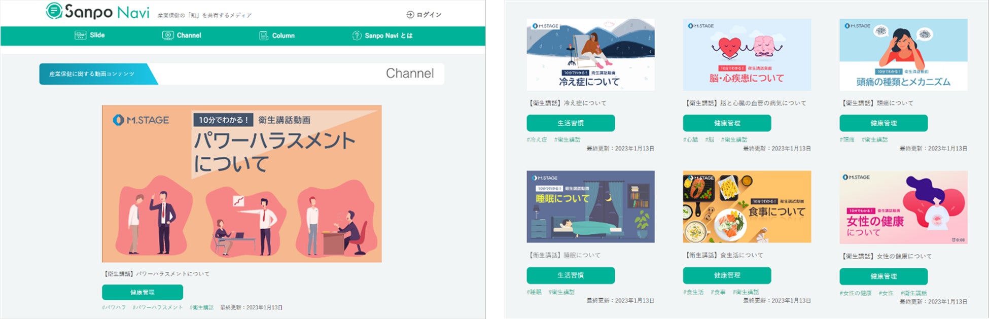 『Sanpo Navi』は2017年のサービス開始以来、企業の産業保健を応援するメディアとして多くの記事コンテンツを発信してきました。そしてこの度、動画やスライド資料といった新たなコンテンツの拡充により、「産業保健の『知』を共有するメディア」としてリニューアルいたします。