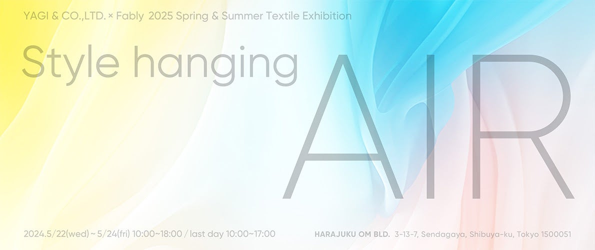 株式会社ヤギ(本社:大阪市中央区・東京都中央区、代表取締役 社長執行役員:八木隆夫、以下「当社」)は、5月22日(水)~24日(金)の期間、原宿OMビルにて2025年春夏のテキスタイル展示会を開催いたします。