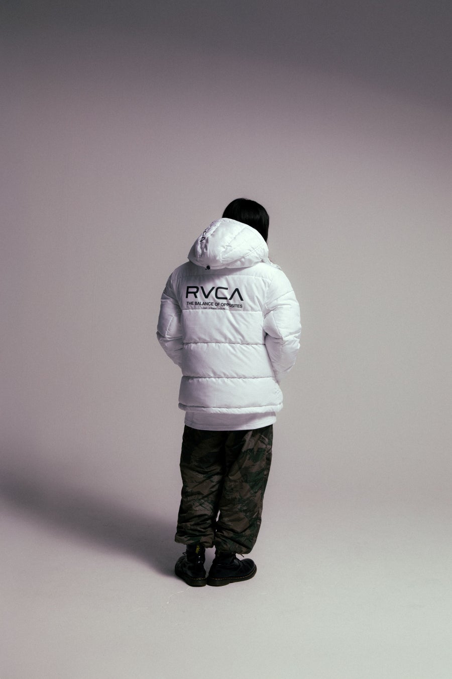 本コレクションでは、RVCAの人気アイテムをベースに、コラボレーション限定のカモフラージュ柄やダブルネームタグを採用。軽量で動きやすいパファージャケットや、防風撥水のセットアップ、リバーシブル仕様のモデルなど、全6型を展開。ブランドロゴやドローコードにリフレクター素材を使用し、ホワイト、ブラック、カモフラージュを基調としたミニマルなカラーパレットで仕上げられている。