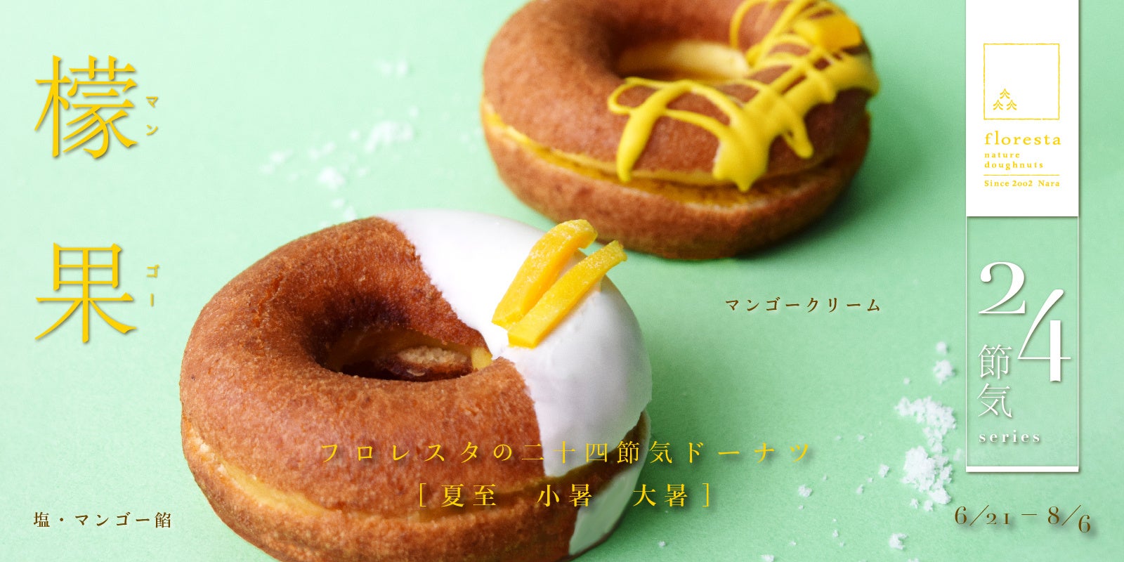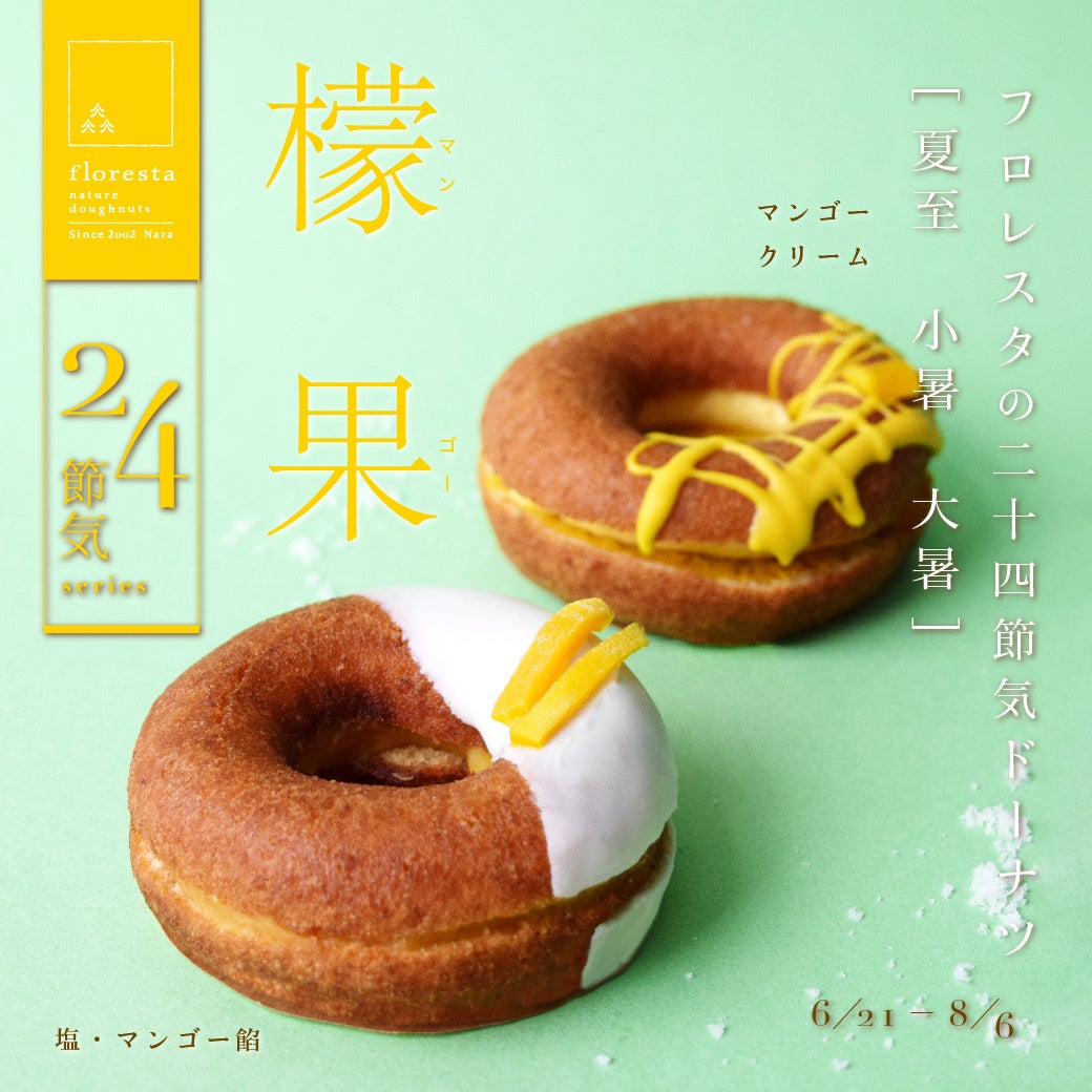 株式会社フロレスタ(本社:大阪市浪速区/代表取締役社長:辻尾吉厚)は、2022年より旬を味わう二十四節気ドーナツをリリースし、第4弾として6月21日(火)の夏至から「檬果-マンゴー-」のドーナツを販売しております。