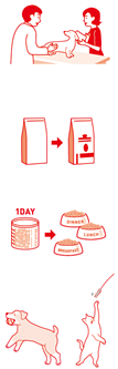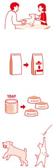① キャンペーン対象の動物病院で「健康体重」を知る: 体重や年齢に応じたサンプルセットをお渡しします。