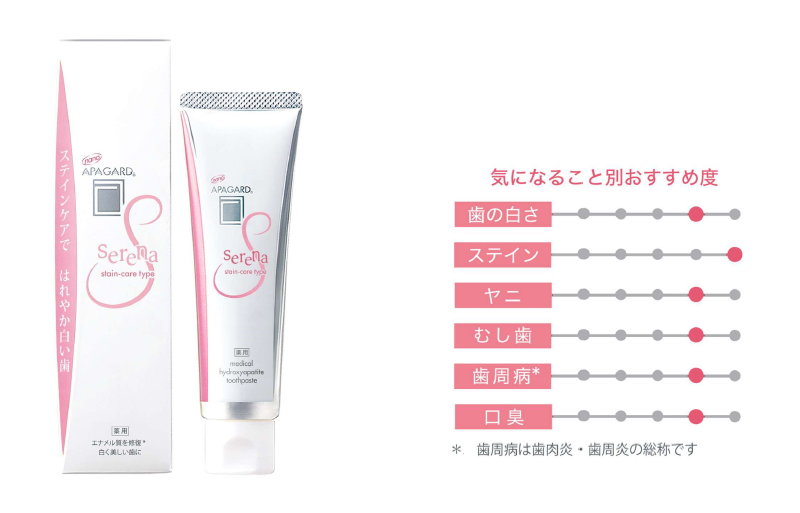 「アパガードセレナ」は、2種のステインケア成分*1を配合。毎日の歯みがきで着色汚れ(ステイン)をケアします。コーヒーやカフェラテなどを楽しむカフェ巡りや、アフタヌーンティーなどによる歯の“ステインケアニーズ”をいち早くキャッチし、今年3月の発売以来、売上好調。シリーズでも人気商品となりました。