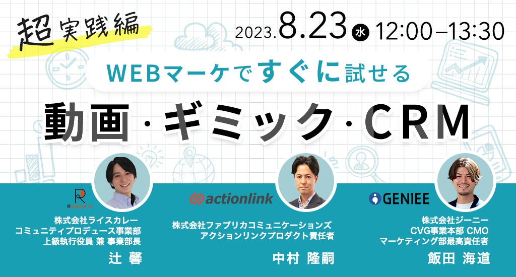 【8月23日(水)開催】共催セミナー「【”超”実践編】WEBマーケで”すぐに”試せる『動画』『ギミック』『CRM』」を開催いたします