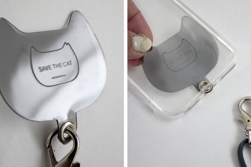 クリアなスマホケースに挟めばかわいい猫型が見えます。
