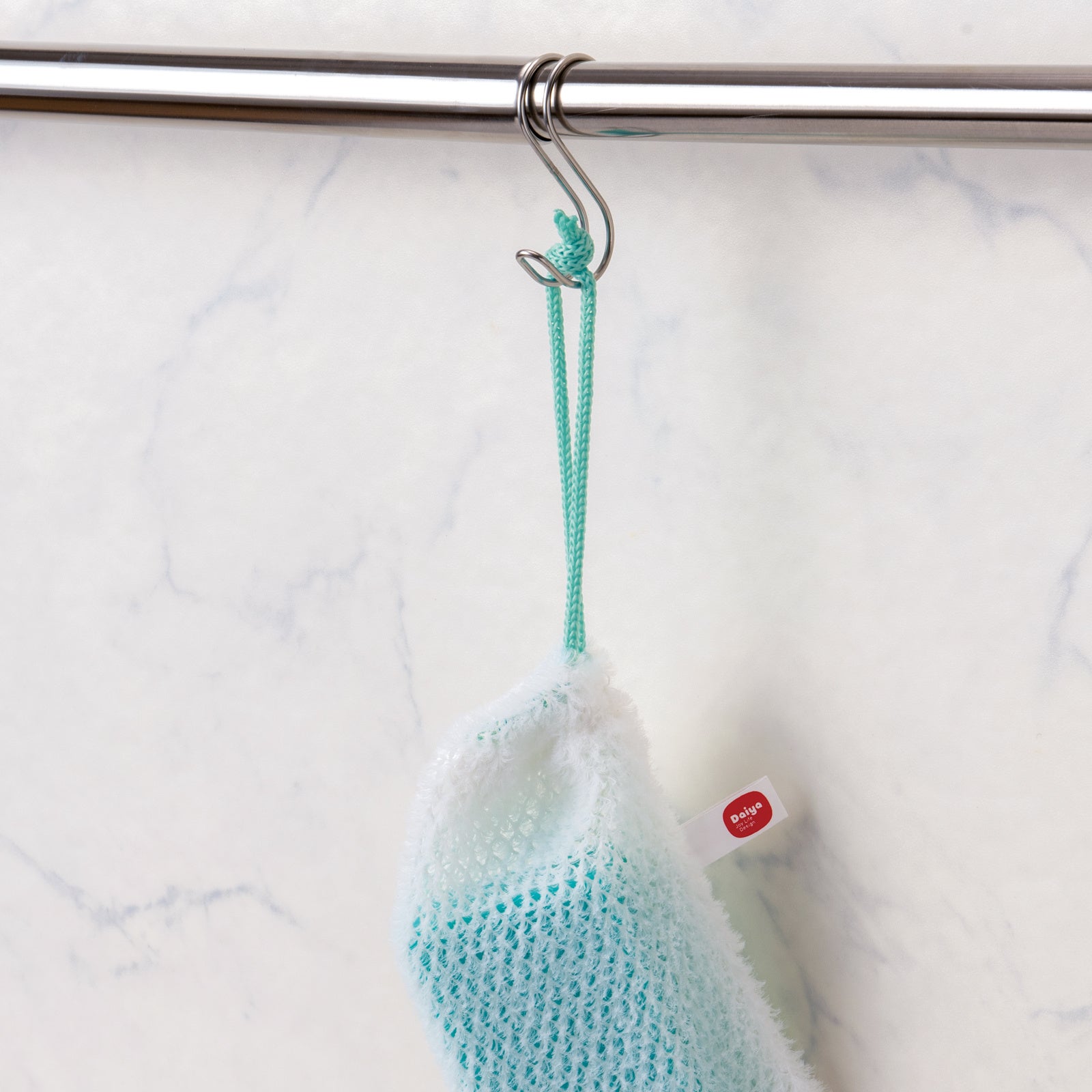 使用後は巾着の紐をフックに掛けて乾燥させることでせっけんが溶けにくく、収納にも困りません。