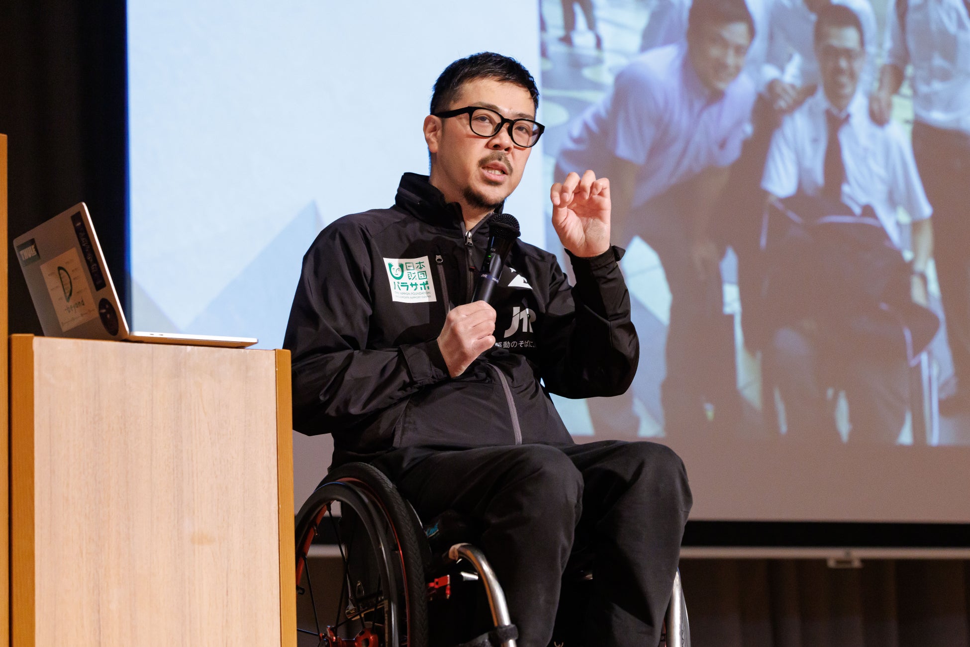 車いすラグビー日本代表として、アテネ2004、北京2008、ロンドン2012パラリンピックに出場、リオ2016パラリンピックでは日本代表のアシスタントコーチとして帯同、車いすラグビー初の銅メダル獲得に貢献した三阪洋行が講師を務めました。