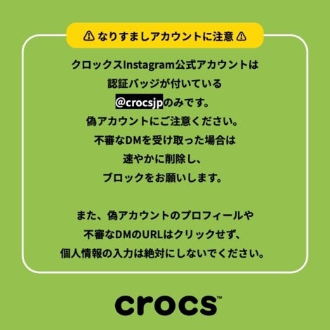 Crocs (Nasdaq: CROX)は世界のリーダーとして、女性向け、男性向け、お子様向けに革新的なカジュアルフットウェアを提供するブランドです。快適さを兼ね備えた、多くの人々に愛されるスタイルのフットウェアコレクションを提供しています。Crocs はCrocsとHEYDUDEという二つのブランドを展開しており、世界中の85カ国以上の国で様々なチャネルで販売されています。詳細については、公式オンライン(https://www.crocs.co.jp)、(www.heydude.com)、公式Instagram(@crocsjp)、公式Twitter(@crocsJP)、公式Facebook(@crocsJP)をご覧ください。