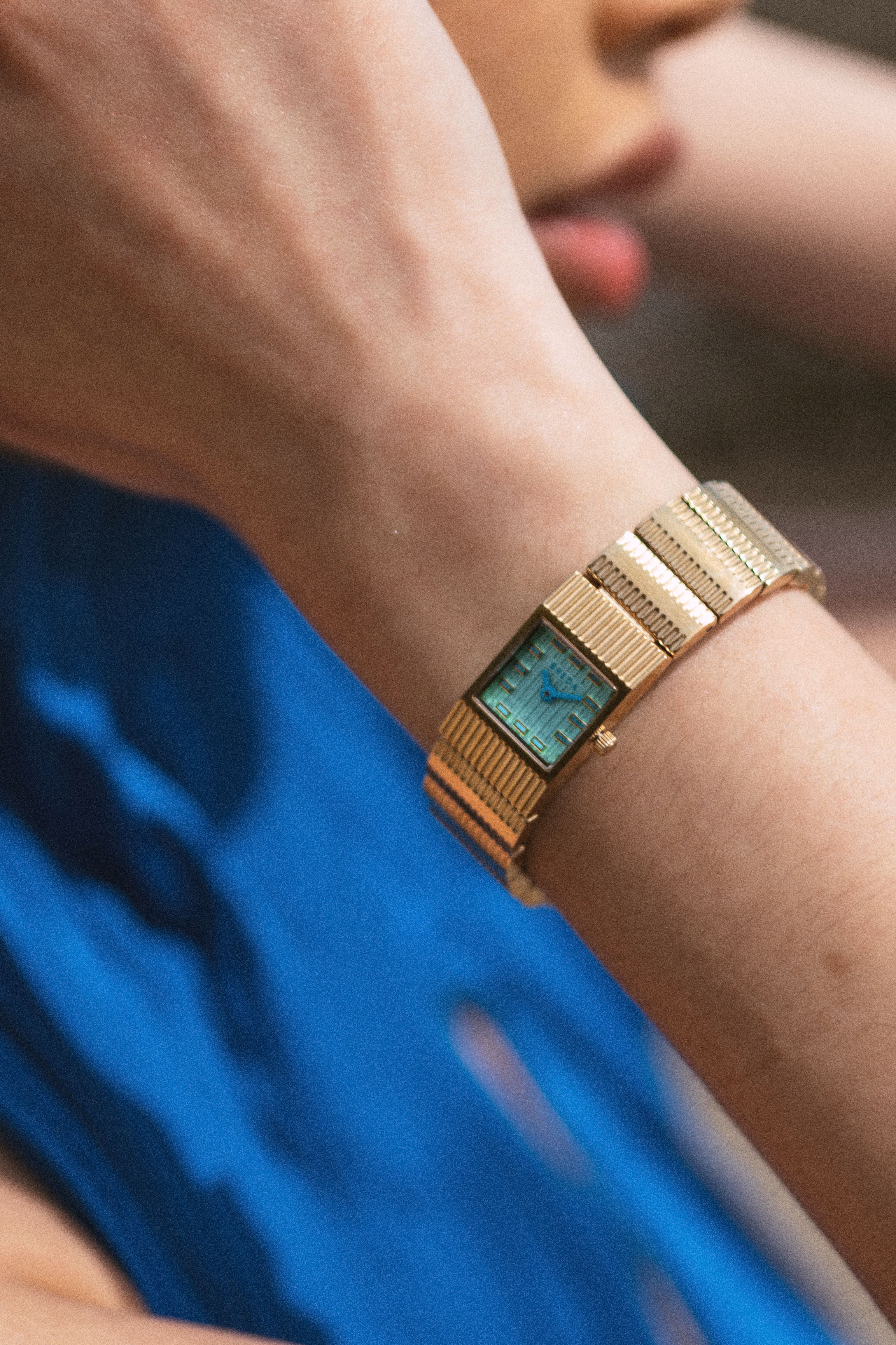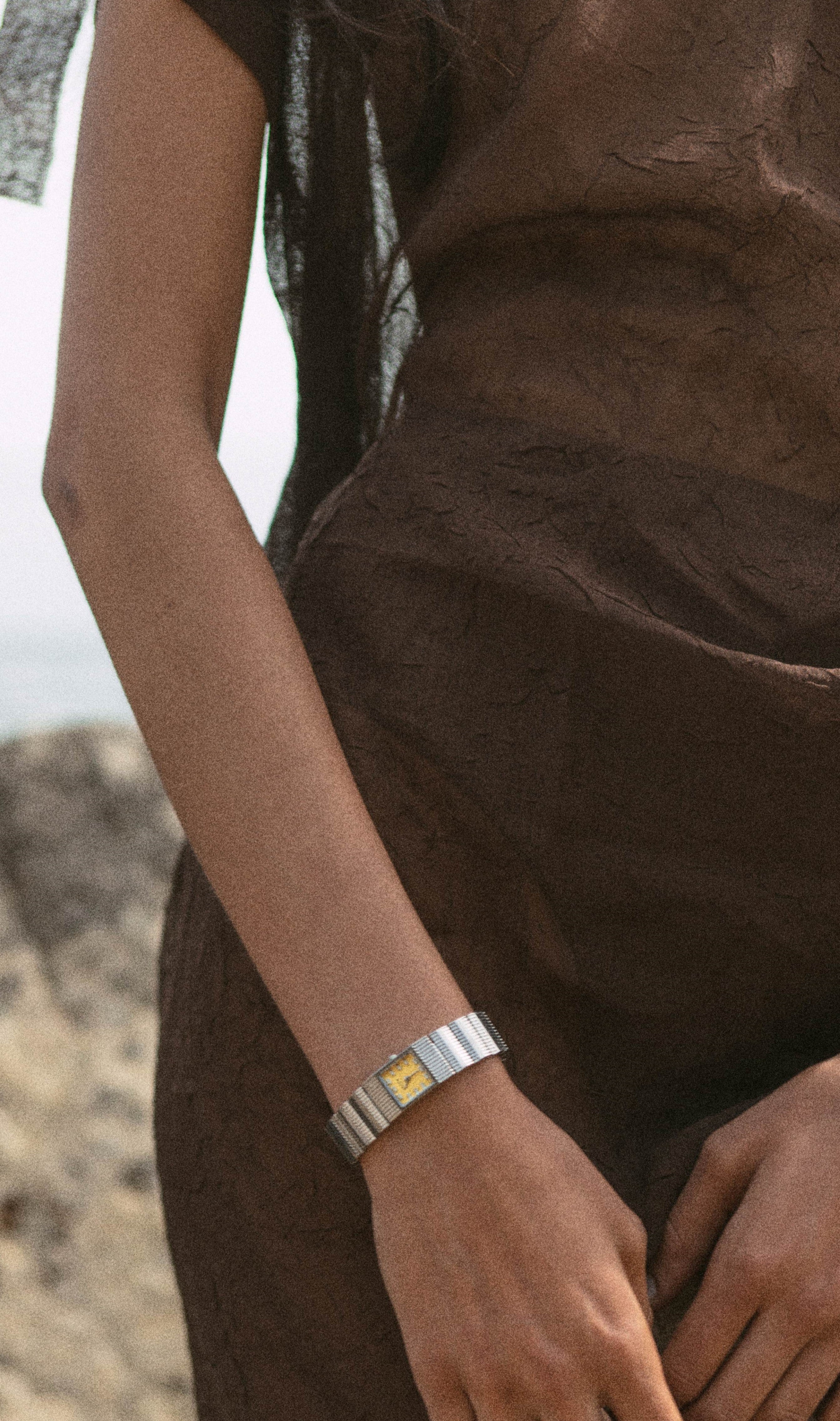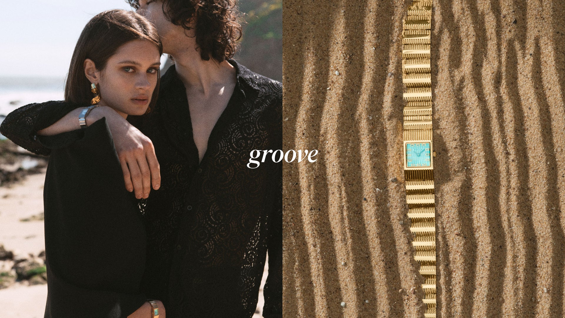 随所にあしらわれたストライプが新鮮な新コレクション「Groove(グルーヴ)」。 山や谷が描く複雑な地形のような人生の中で、自分自身と向き合い、その内面を意識して、アイデンティティの全ての側面がうまく調和することを願ってデザインされました。自分らしさを大切にするBREDAの想いが、ジュエリーのような繊細なタイムピースに表現されています 。