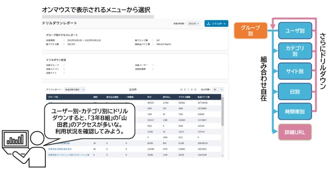 このような状況の中、教育機関においては、「児童・生徒の不適切行動を検知し、安心安全なインターネット環境整備につなげたい」といった要望や、自治体や企業においては、「情報漏洩リスクのある従業員の危険行動や内部不正を検知し、強固なセキュリティ環境を構築したい」との声が高まっており、Webアクセスログを効率的に可視化・分析するツールが求められていました。