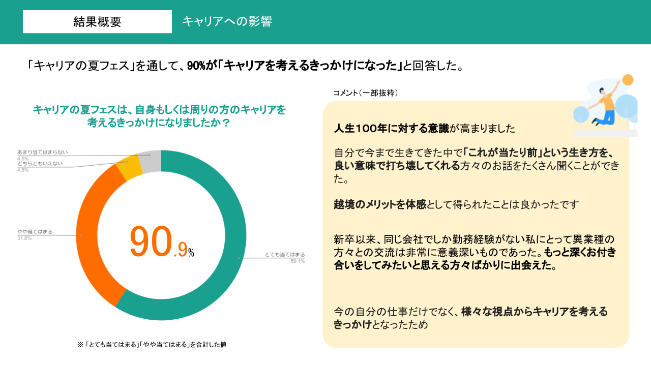 「キャリアの夏フェス」を通して、回答者の90%が、「キャリアを考えるきっかけになった」と回答しました。