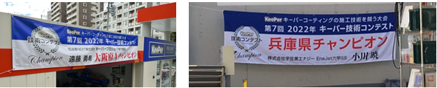 また、キーパー技術コンテストで全日本や県予選などで、優勝した技術者がいる店舗は、横断幕などを出すことで、販促活動に役立てております。
