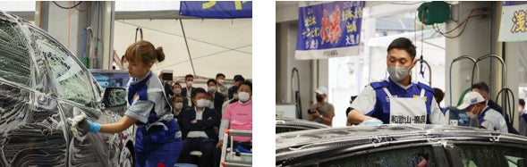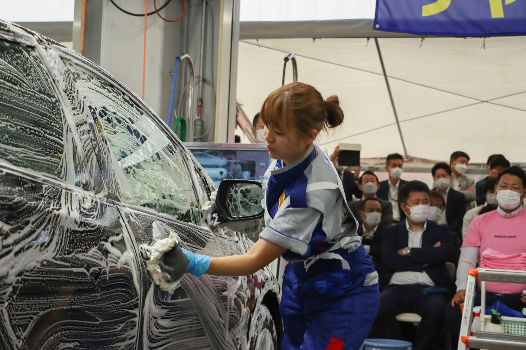 10月14日(金)に行われた決勝戦は、昨年1月に発売されたECOプラスダイヤモンドキーパーで行い、車1台を1人で施工し、ガラスコーティングからレジンの塗装、仕上げまでの基準タイムとその美しさで順位を競いました。