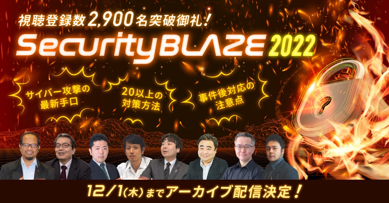 視聴登録数2,900名突破御礼!セキュリティカンファレンス「Security BLAZE 2022」無料アーカイブ配信決定【12/1(木)までの期間限定配信】