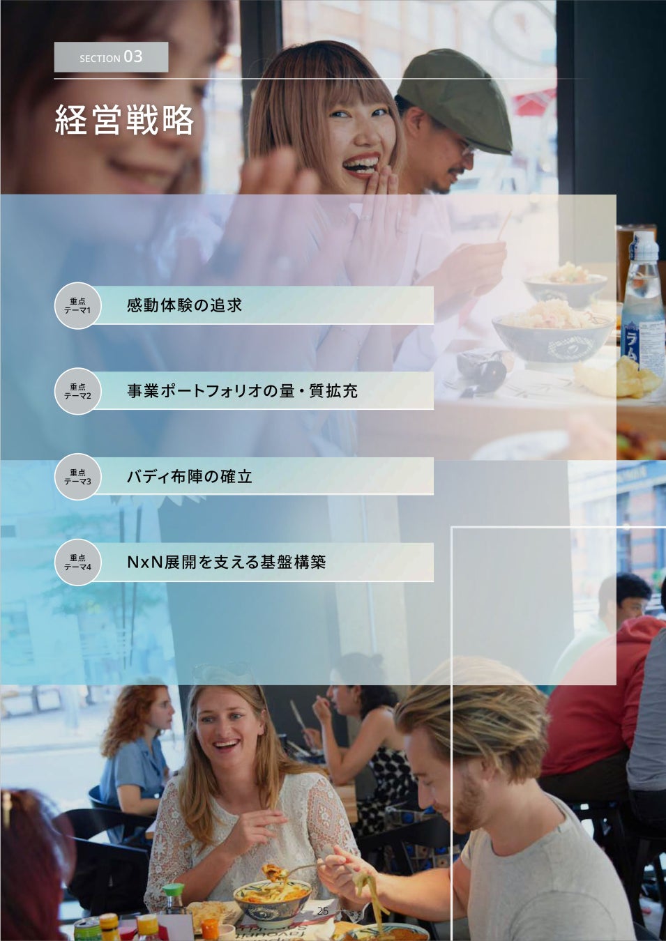 本レポートは、「食の感動で、この星を満たせ。」をコーポレート・スローガンに掲げる当社グループにとって、価値の根源たる「食の感動体験」と、その継続的な発展・進化を通じた様々な価値創造のあり方をお伝えし、ステークホルダーの皆様と対話すること、その対話により更なる価値の創造につなげることを目的にしています。