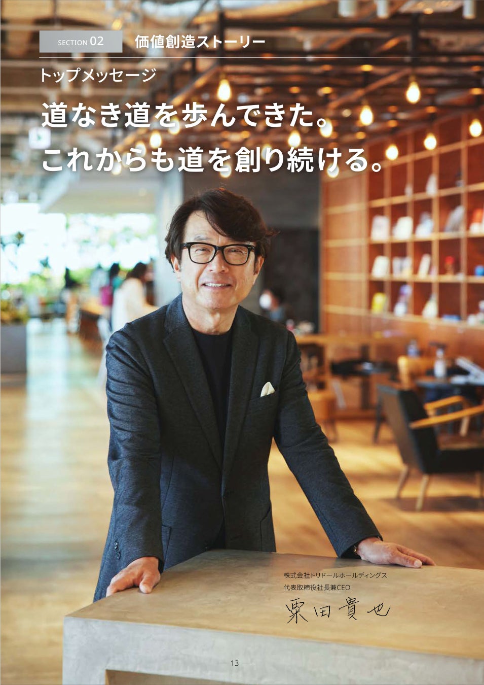 株式会社トリドールホールディングス(東京都渋谷区、代表取締役社長 兼 CEO 粟田 貴也、以下、トリドール HD)は、トリドールグループ初となる統合報告書「TORIDOLL REPORT 2022」を発行いたしました。