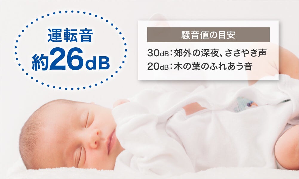生活スペースに置いても音が気にならないよう、高い冷却性能と運転音の静かさのバランスを求め約26dBにまで抑えました。ワンルームのお部屋やリビングに設置しても、映画鑑賞や睡眠を邪魔しません。