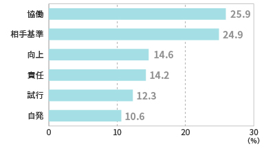 ・「何事も率先して真剣に取り組むこと」(13.8%)が過去最低。