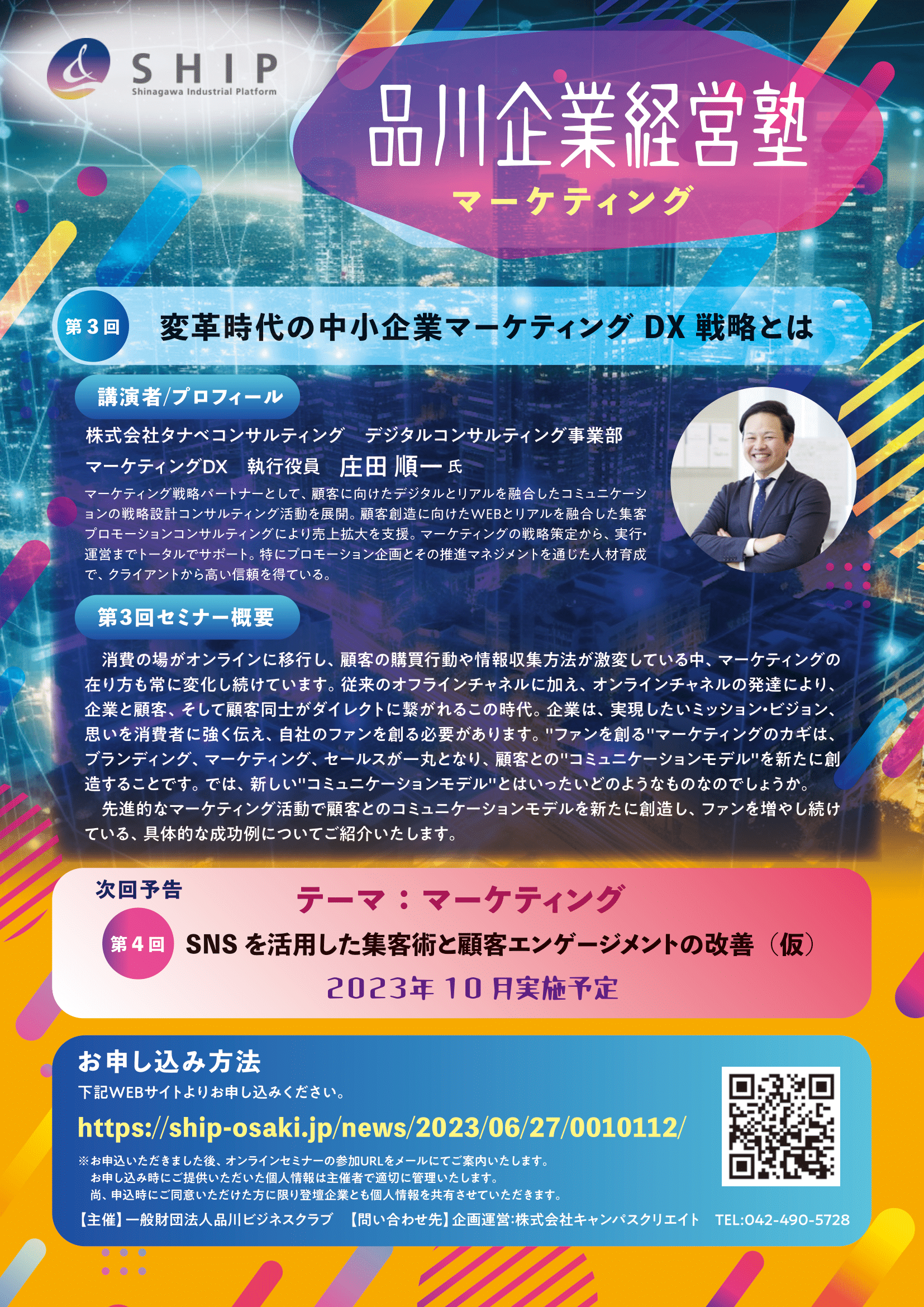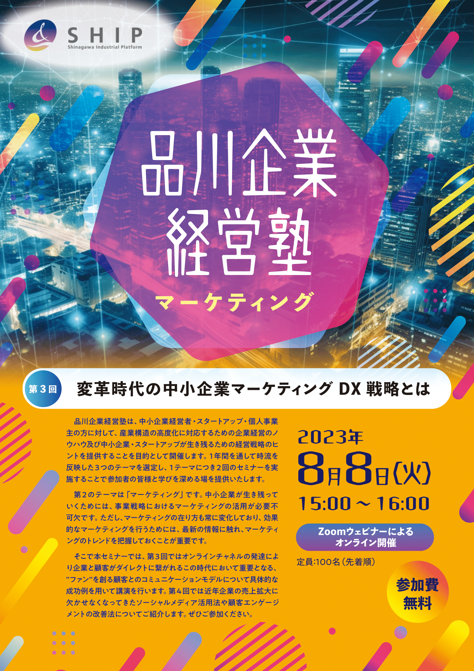品川産業交流支援施設SHIPでは、2023年8月8日(火)、第3回 品川企業経営塾として