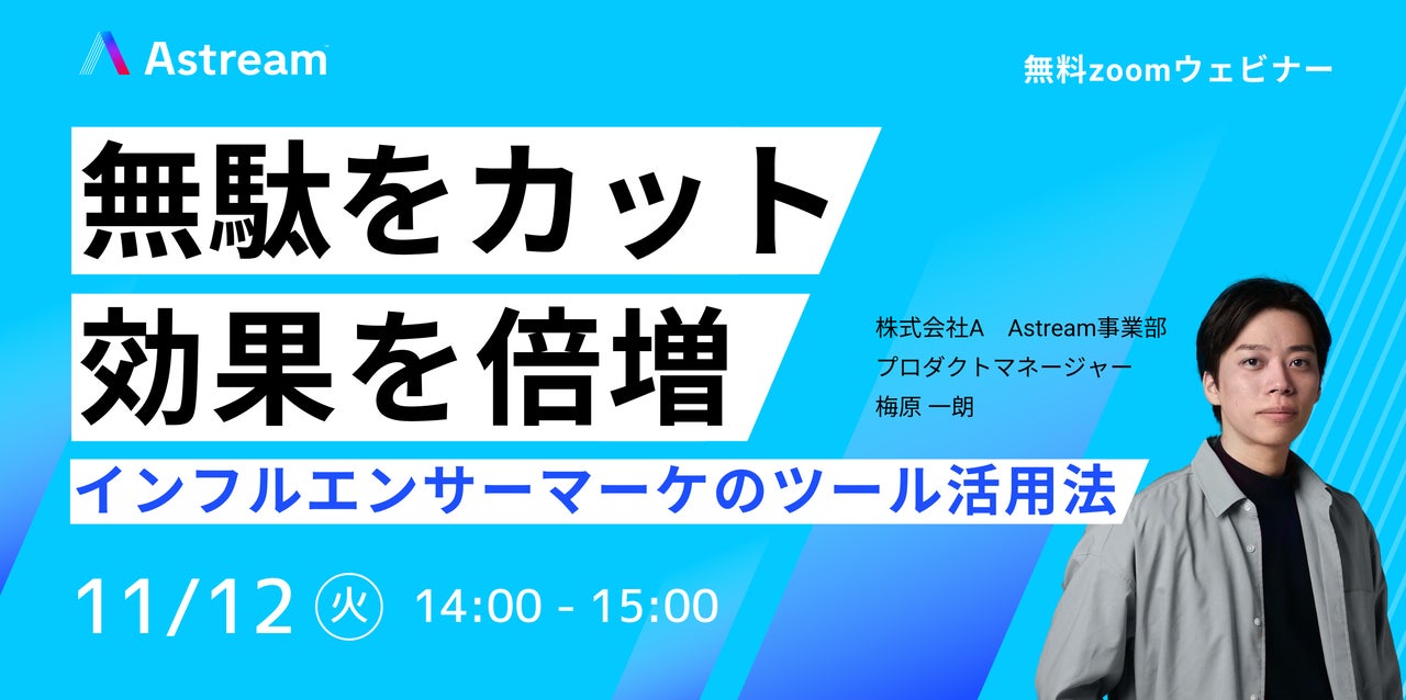 株式会社A(https://acetokyo.com/)は、マーケティングご担当者様に向けて、「無駄をカットし、効果を倍増!今こそ知りたいインフルエンサーツール活用法」と題した無料ウェビナーを、11月12日(火)14:00~15:00にオンラインで開催します。