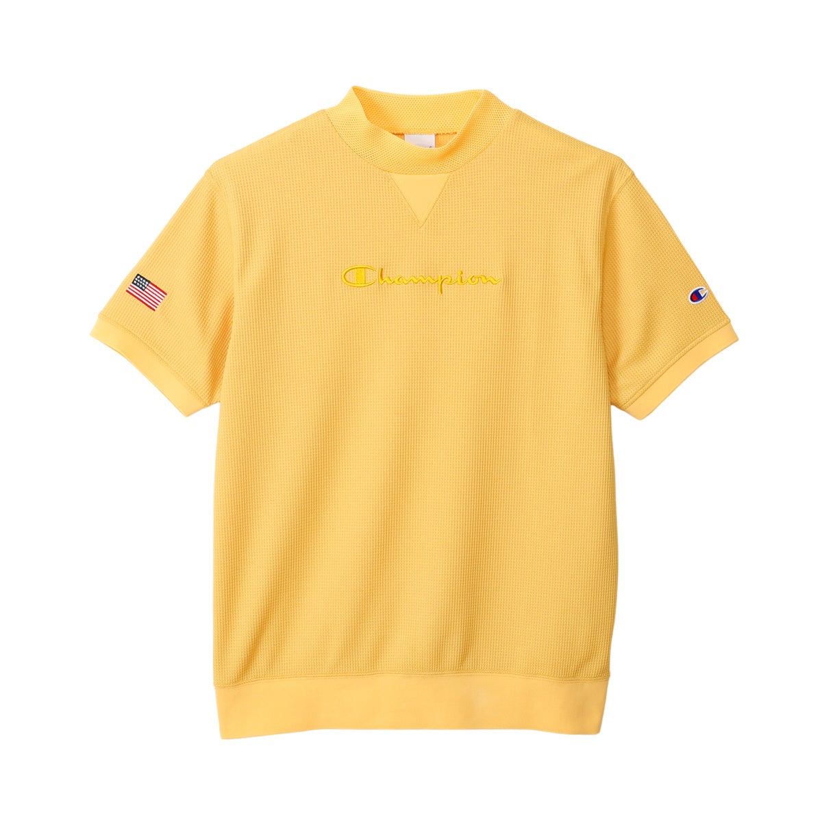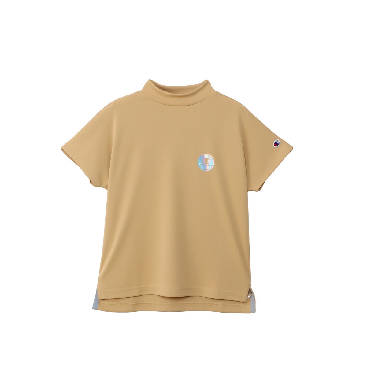 通気性に優れ、吸汗速乾機能、UVカット機能(UPF50+)、遮熱効果など、暑い季節に必要な要素を高い次元で実現した素材をボディと襟ともに使用したショートスリーブモックネックシャツです。柔らかな肌触りと軽快な着心地で、袖に切り替えのないゆったりとしたフレンチスリーブのシルエット。前後の着丈に差をつけ、両脇にはスリットを入れています。左胸にはサークル内にレイアウトしたCロゴとChampion®(チャンピオン)のコンビネーションロゴをメタリックプリントで入れています。