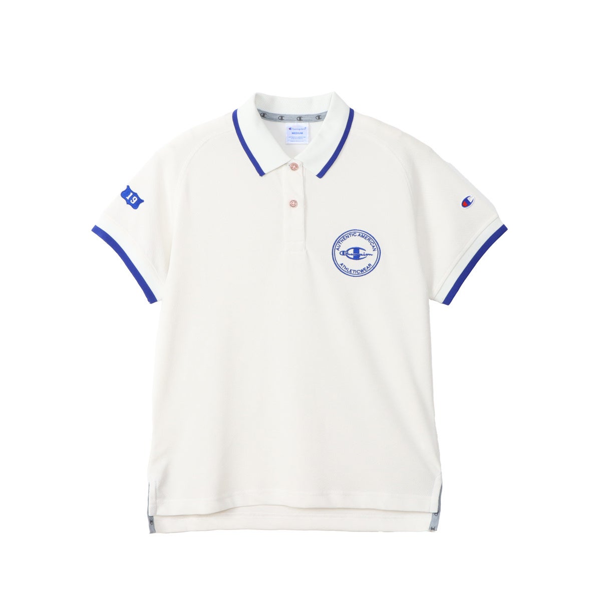 独特な杢調の表面感を持った、ドライでソフトな肌触りに、速乾性、UVカット機能も備えた素材を使用したショートスリーブポロシャツです。しわが寄りにくい特殊な凹凸のある糸を採用しています。肩や腕の動きをスムーズにし、脱ぎ着しやすい、特徴的な形状のラグランスリーブで、襟裏は通気性を高めるメッシュ構造です。左胸にはChampion®(チャンピオン)ロゴ、Cロゴ、「AUTHENTIC AMERICAN ATHLETICWEAR(オーセンティック アメリカン アスレチックウェア)」を組み合わせたグラフィックを、右袖にはChampion®の創設年である1919年を表す「19」のグラフィックを、それぞれ刺繍しています。