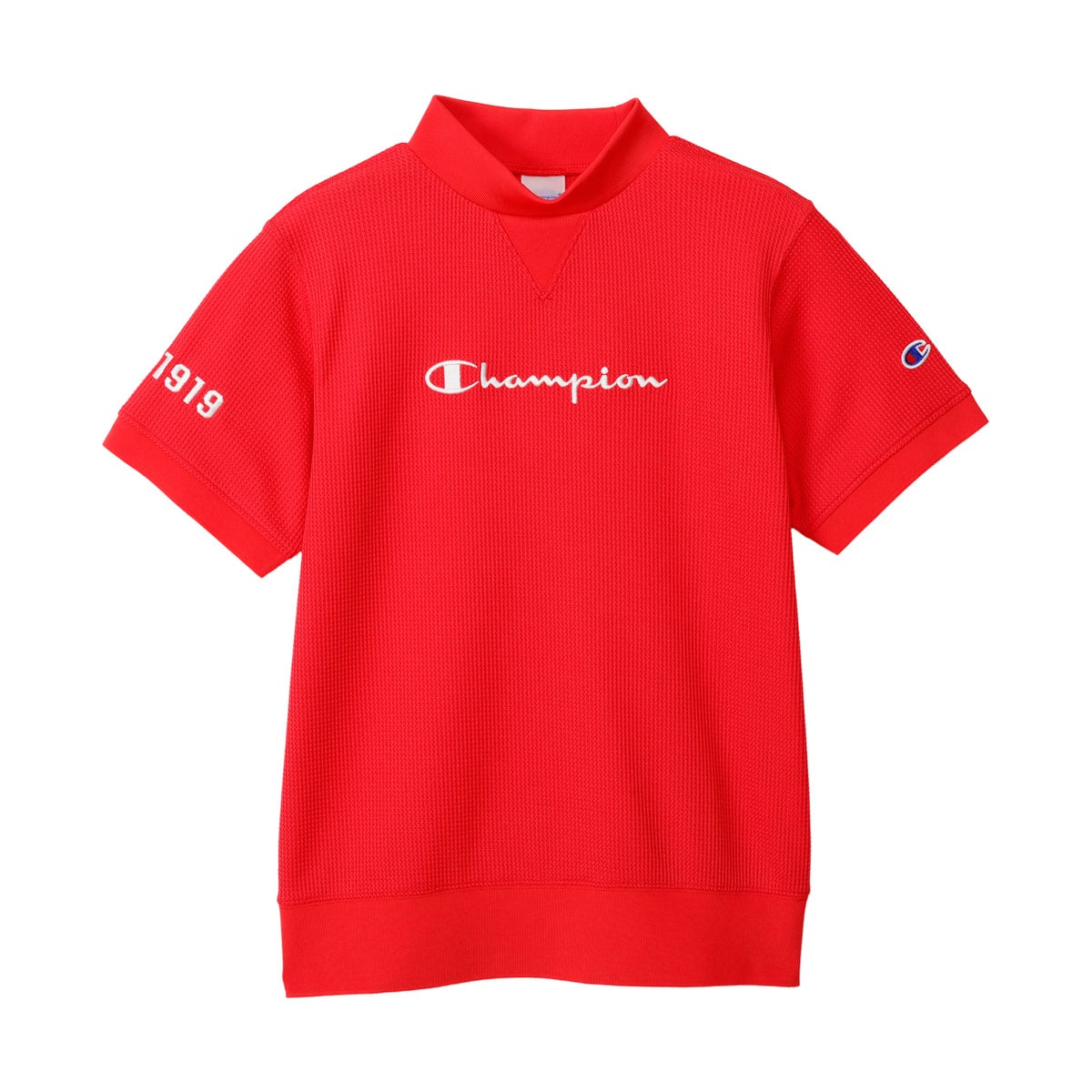 ソフトな肌触りのワッフル素材を使用したショートスリーブモックネックシャツです。速乾性、遮熱効果、UVカット機能を備え、裾のリブをタックアウトすることで通気性の確保ができるので、暑い時期でもより快適にプレーが楽しめます。襟にも通気性を高めるメッシュ構造の素材を採用しています。ヴィンテージスウェットシャツに見られる襟元のガゼットによって首周りの伸縮性を高め、脱ぎ着がしやすい特長も持っています。胸にはChampion®(チャンピオン)ロゴを立体刺繍で、袖にはChampion®の創設年である「1919」とCロゴを刺繍しています。同素材を使用したスカート(CW-BG204)も展開しているので、セットアップでの着用もオススメです。環境に配慮されたリサイクルポリエステル100%を使用。