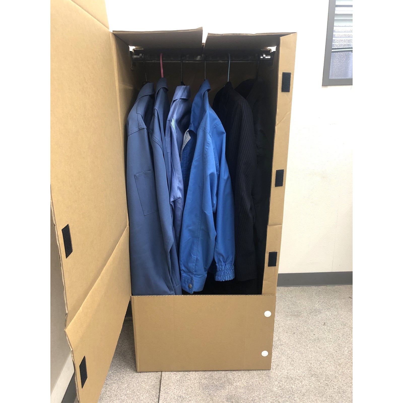 ・大切な衣類をハンガーにかけたまま収納・運搬が可能な、ダンボール製ハンガーボックスです。室内での保管やお引越しの際に、大切な衣類をしわやホコリから守ってくれます。