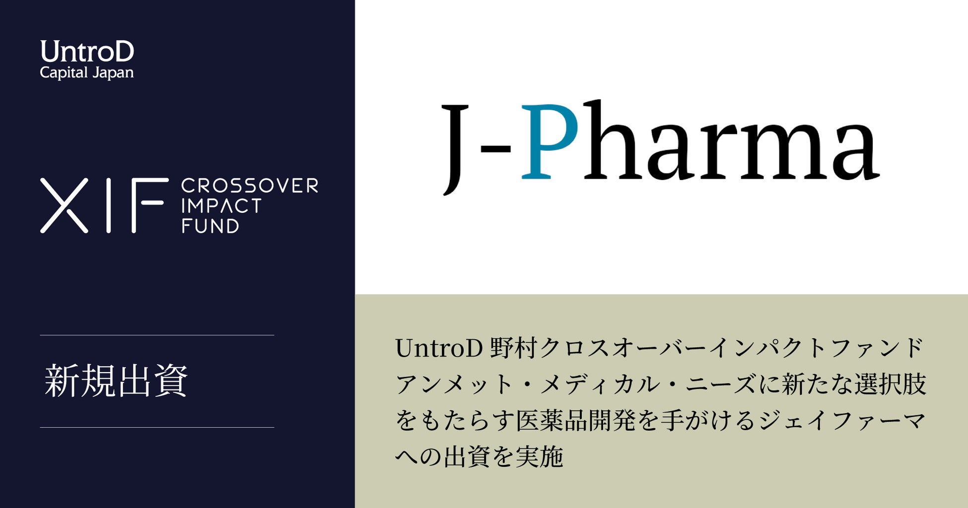 UntroD Capital Japan株式会社(所在地:東京都港区、代表:永田 暁彦、以下、「当社」)が運営するUntroD野村クロスオーバーインパクトファンド(以下、「XIF」)は、新規治療ターゲットであるSLCトランスポーター(特にLAT1(L型アミノ酸トランスポーター)に注力した医薬品の開発を手がけるジェイファーマ株式会社(本社:神奈川県横浜市、代表取締役:吉武 益広・舛屋圭一、以下、「ジェイファーマ」)へ投資を実施したことをお知らせ致します。ジェイファーマは今回の資金調達をもとに、「ナンブランラト」*1及び「JPH034」*2の研究開発を進めて参ります。