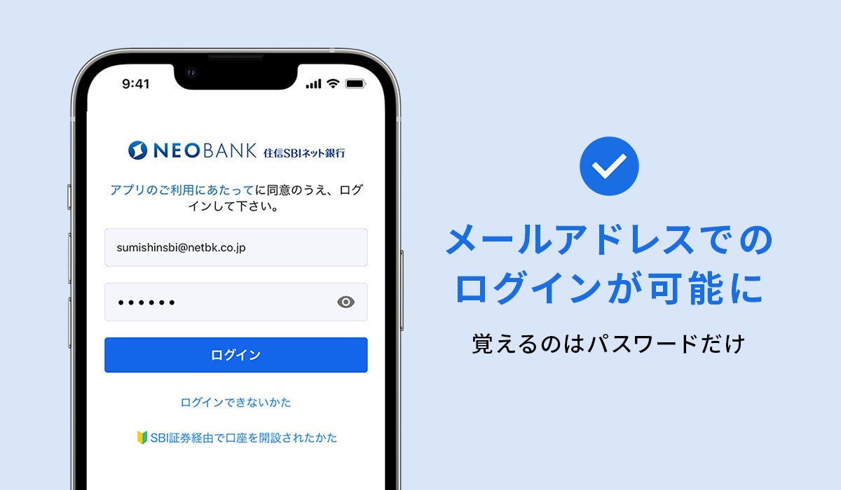 住信SBIネット銀行株式会社(本社:東京都港区、代表取締役社長(CEO):円山 法昭、以下「住信SBIネット銀行」という)は、2022年9月27日、メールアドレスをログイン時に必要なユーザーネームとしてご利用いただける機能をリリースいたしました。