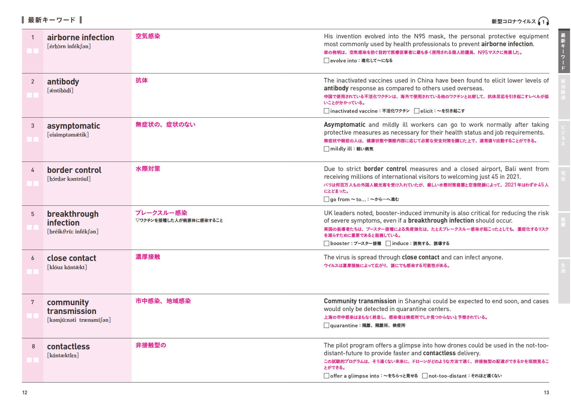 ニュース頻出の重要単語はもちろん、「インスタ映え」「バズる」など従来の単語集にはない最新ワードも多数収録。