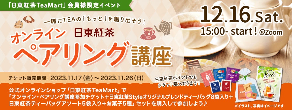 <日東紅茶TeaMart会員様限定イベント>公式オンラインショップ「日東紅茶TeaMart」でチケットを購入して参加しよう!TEAをもっと楽しむ「オンライン・ペアリング講座」初開催決定
