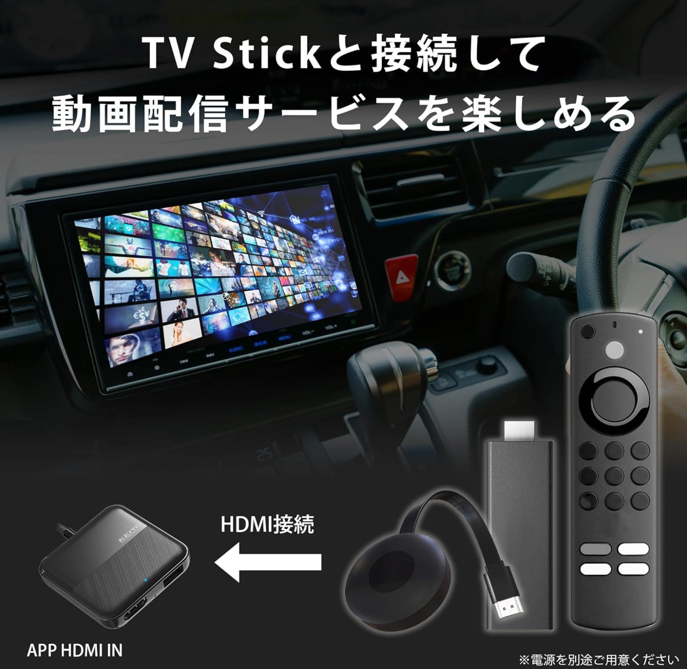 ▶︎APP HDMI IN HDMI出力のTVstickや地デジチューナーを接続 有線AppleCarPlay搭載車両専用 AN-S134