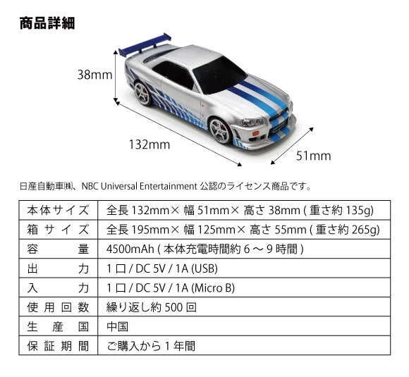 【ワイルド・スピード日本限定】日産スカイライン GT-R (BNR34) ブライアン仕様の自動車型モバイルバッテリーが在庫限りで販売終了!