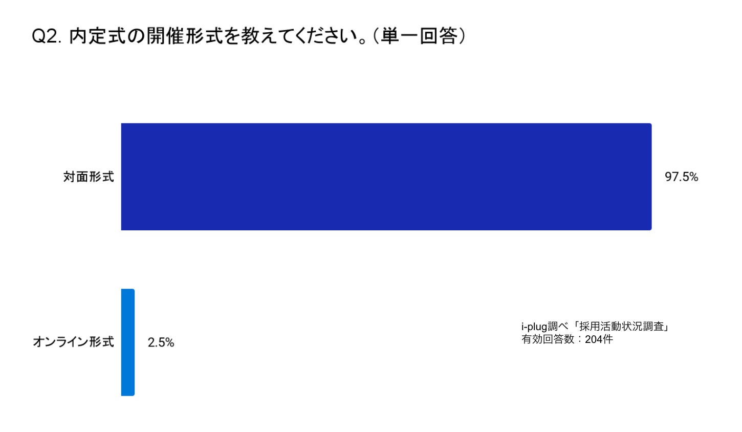 内定式を実施した企業に、内定式の開催形式を伺ったところ、97.5%の企業が「対面形式」と回答しました。