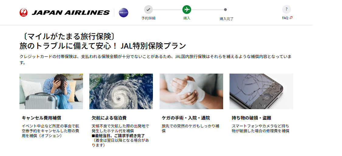 JAL国内線予約サイトからチューリッヒ保険会社の旅行保険加入でマイルがたまるサービスを開始
