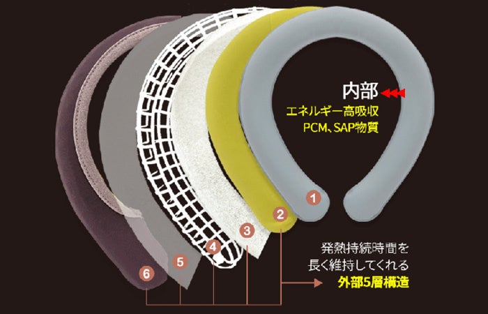 開発で一番も課題は加熱時の破損でした。メーカーは何度も開発をくりかえしやっとたどり着いた5層構造のネックバンドです。