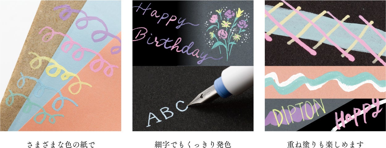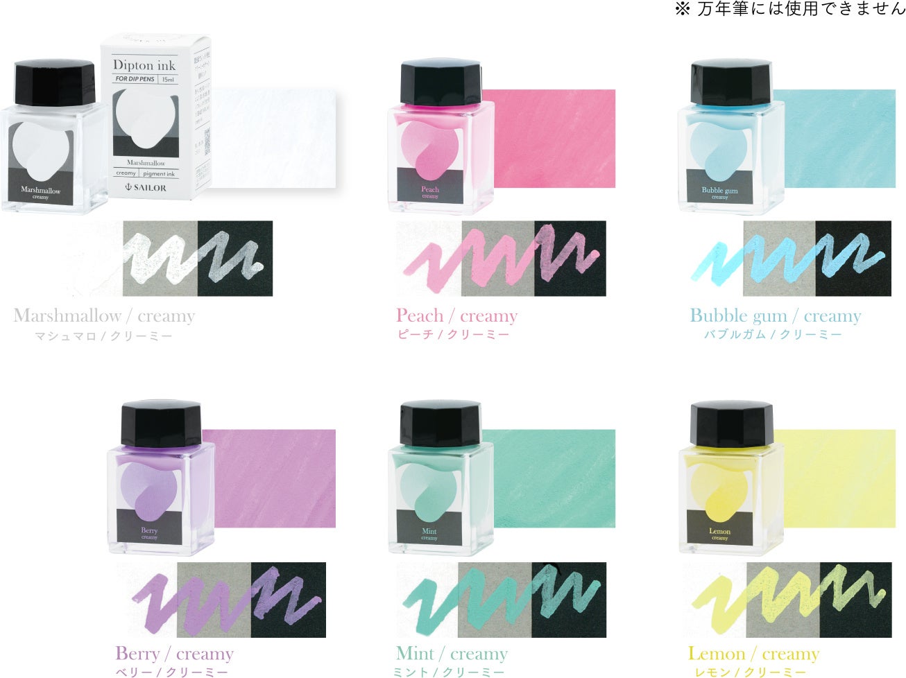 濃色紙でもくっきり発色、クリーミーカラーの顔料インク 『つけペン用ボトルインクDipton(ディプトン) クリーミーインク』