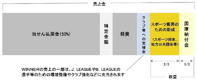 スポーツくじの売上金から、当せん払戻金、経費等を除いた収益の2/3がスポーツ振興の助成に充てられており、この助成金が日本のスポーツを育てる大切なパワーになっています。