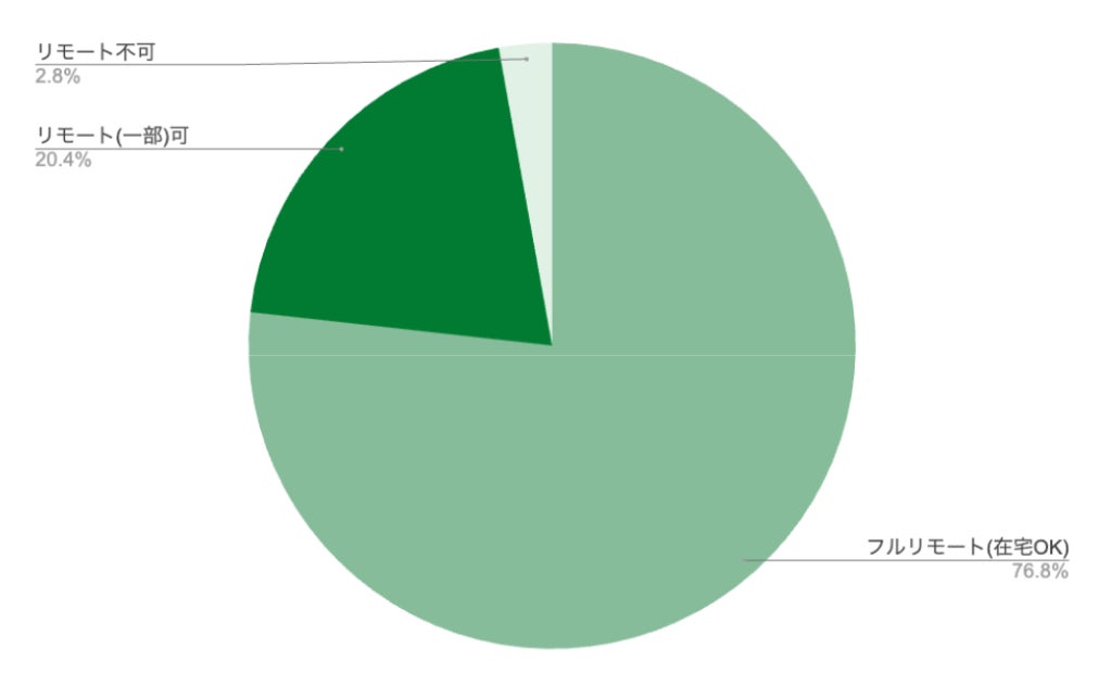 一部リモートワークが可能な案件は20.42%であり、何らかの形でリモートワークに対応している案件が全体の97%以上となっています。