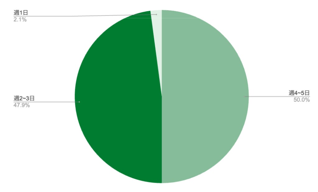 これにほぼ匹敵する47.89%が週2〜3日の稼働となっており、両者で約98%を占める結果となりました。
